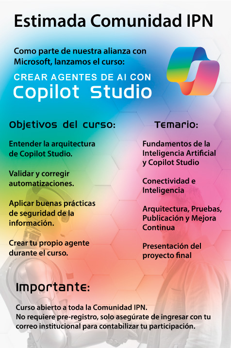 A través de la plataforma Microsoft Learn la comunidad del Instituto Politécnico Nacional, tiene la oportunidad de desarrollar conocimientos y habilidades técnicas en productos y tecnologías de Microsoft. Su objetivo principal es proporcionar recursos de aprendizaje personalizados y prácticos para que los usuarios puedan aplicar en situaciones cotidianas.