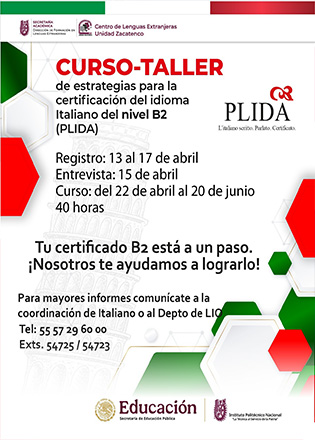 El curso-taller de estrategias para la certificación del idioma italiano (formato PLIDA) está diseñado para apoyar a los participantes en su preparación para este examen internacional, abarcando contenidos hasta el nivel B2. A lo largo del taller, se trabajan técnicas y estrategias específicas para abordar cada una de las secciones de la prueba (comprensión auditiva y de lectura, producción escrita y expresión oral), así como ejercicios prácticos y simulaciones que permiten familiarizarse con el formato del examen.