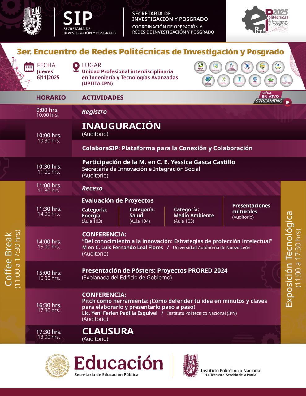 La Secretaría de Investigación y Posgrado, a través de la Coordinación de Operación y Redes de Investigación y Posgrado, se complace en recibir a los investigadores miembros de las redes, con su participación, este Encuentro será altamente productivo y constituirá un hito para la definición del futuro de la investigación en el Instituto Politécnico Nacional.