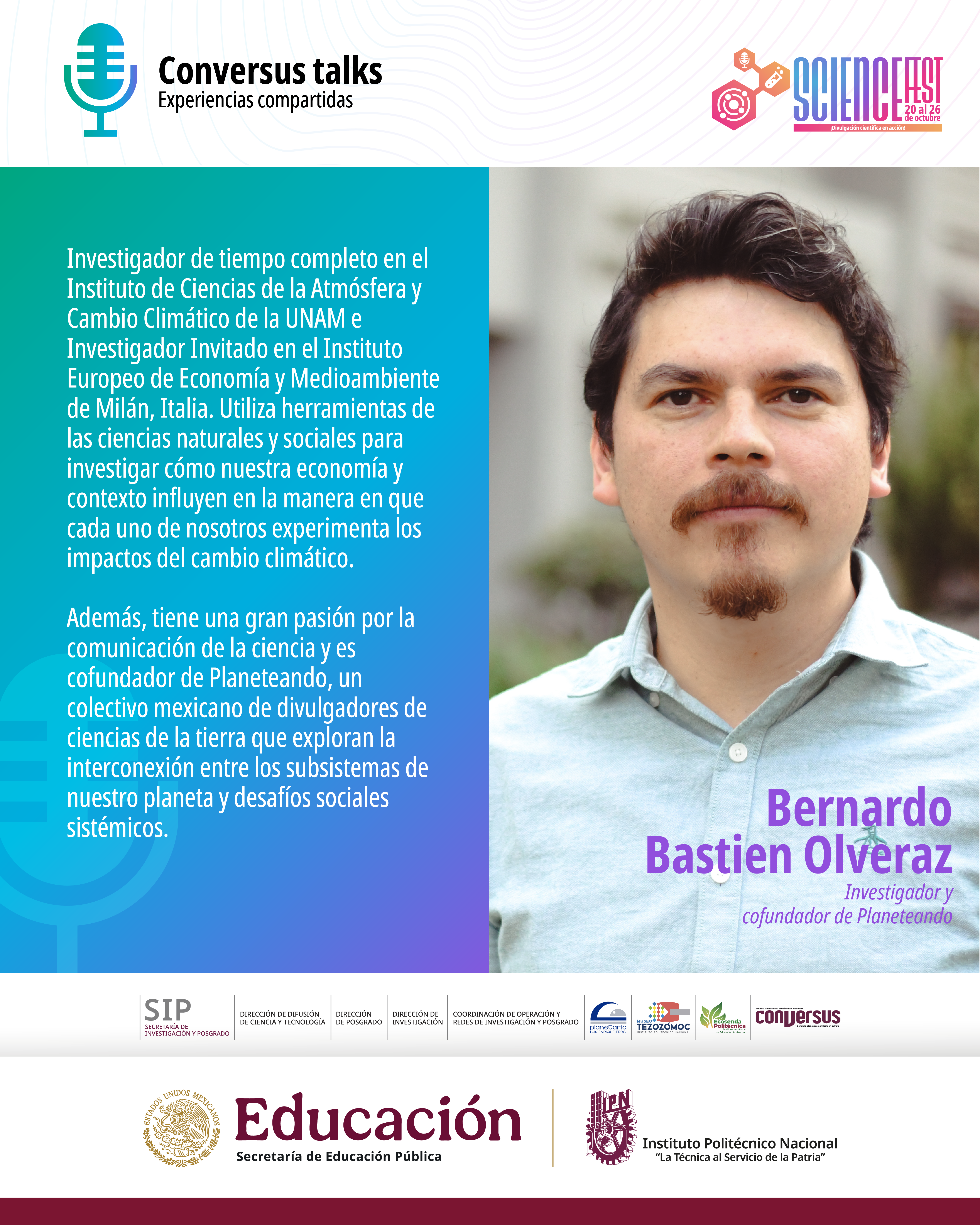 Charla con un especialista de gran trayectoria, conducida por la Mtra. Ana Cristina Olvera, que propicia un diálogo abierto y accesible entre la comunidad científica y el público. Un formato ágil que invita a reflexionar, cuestionar y conectar con la ciencia desde diversas perspectivas.