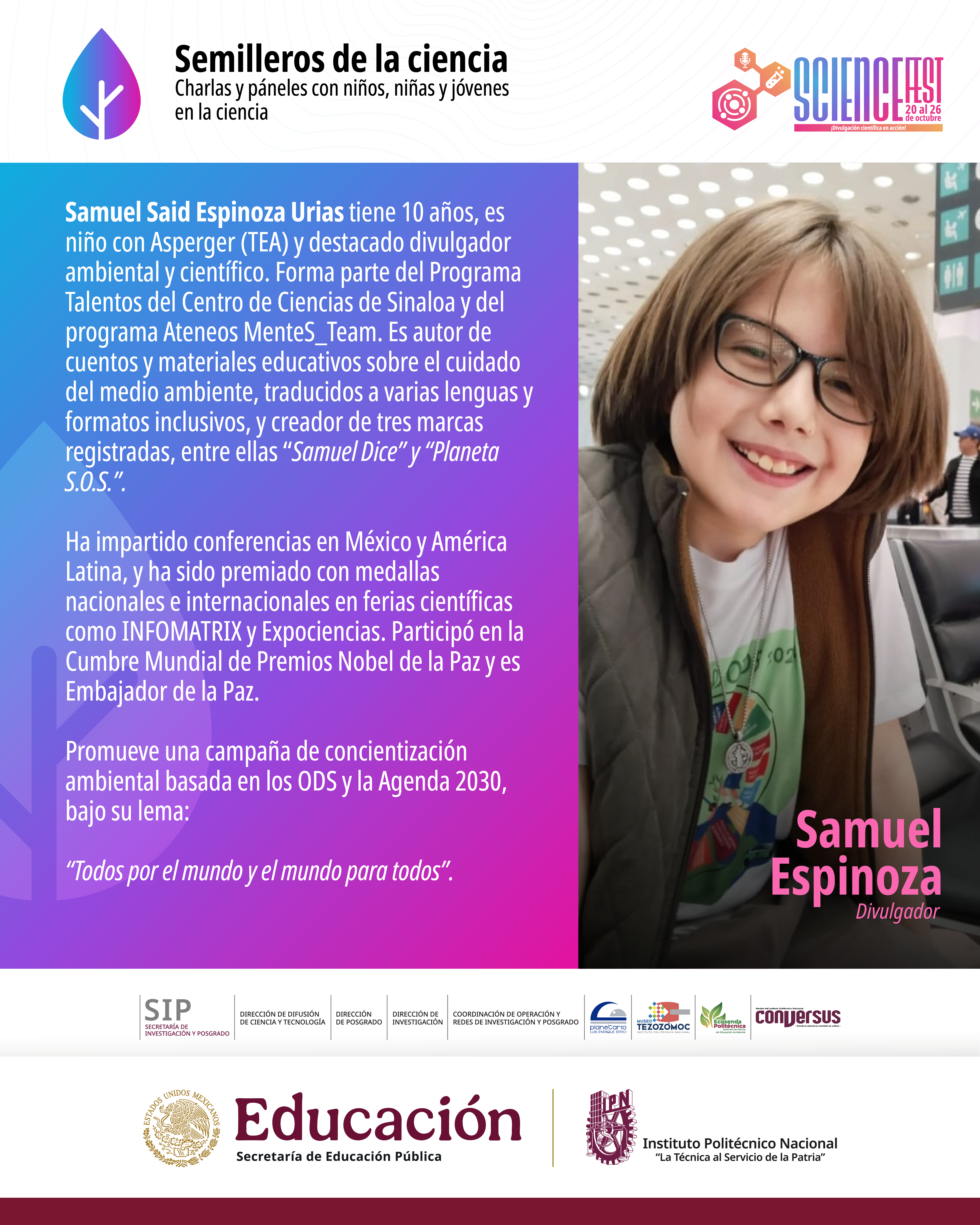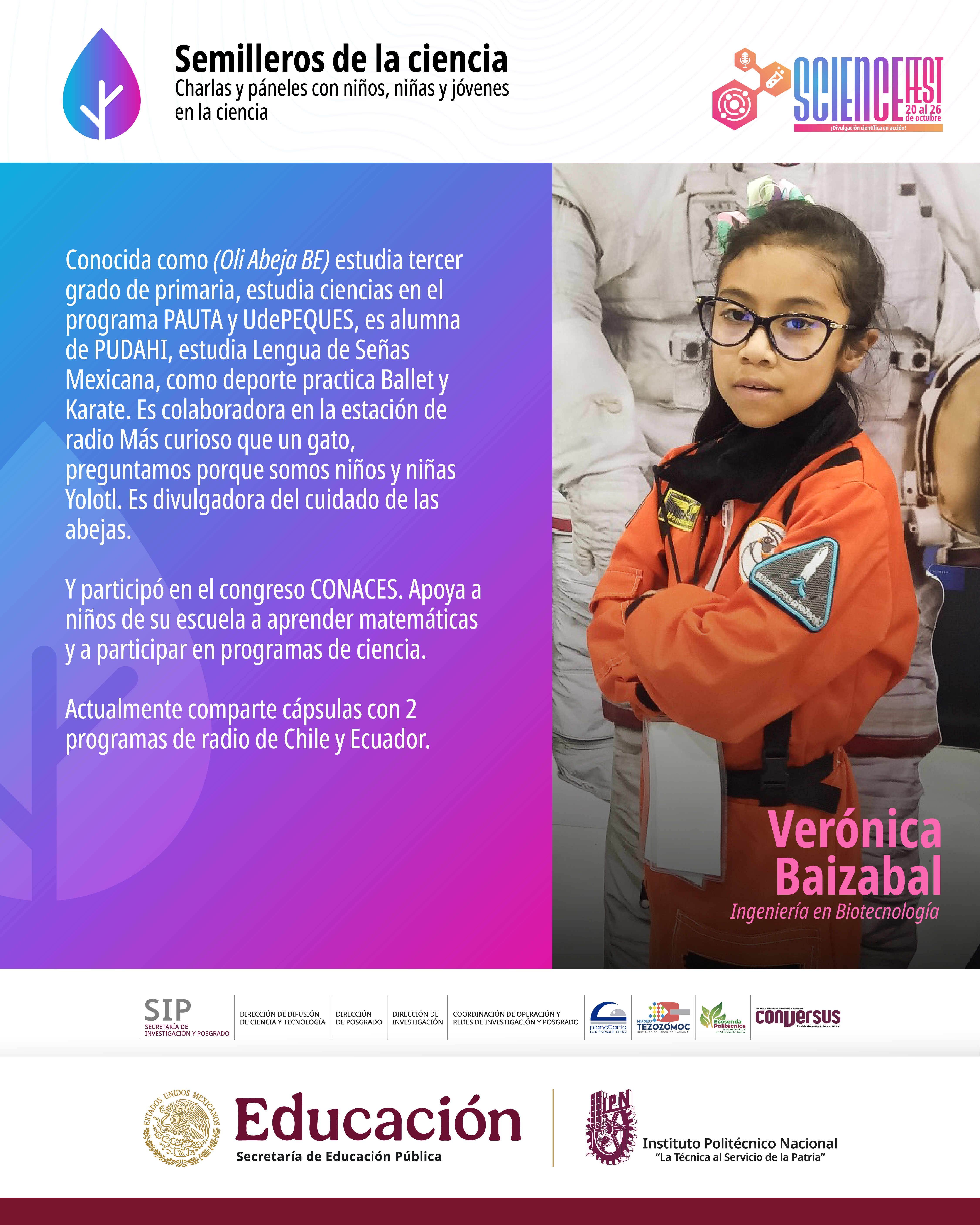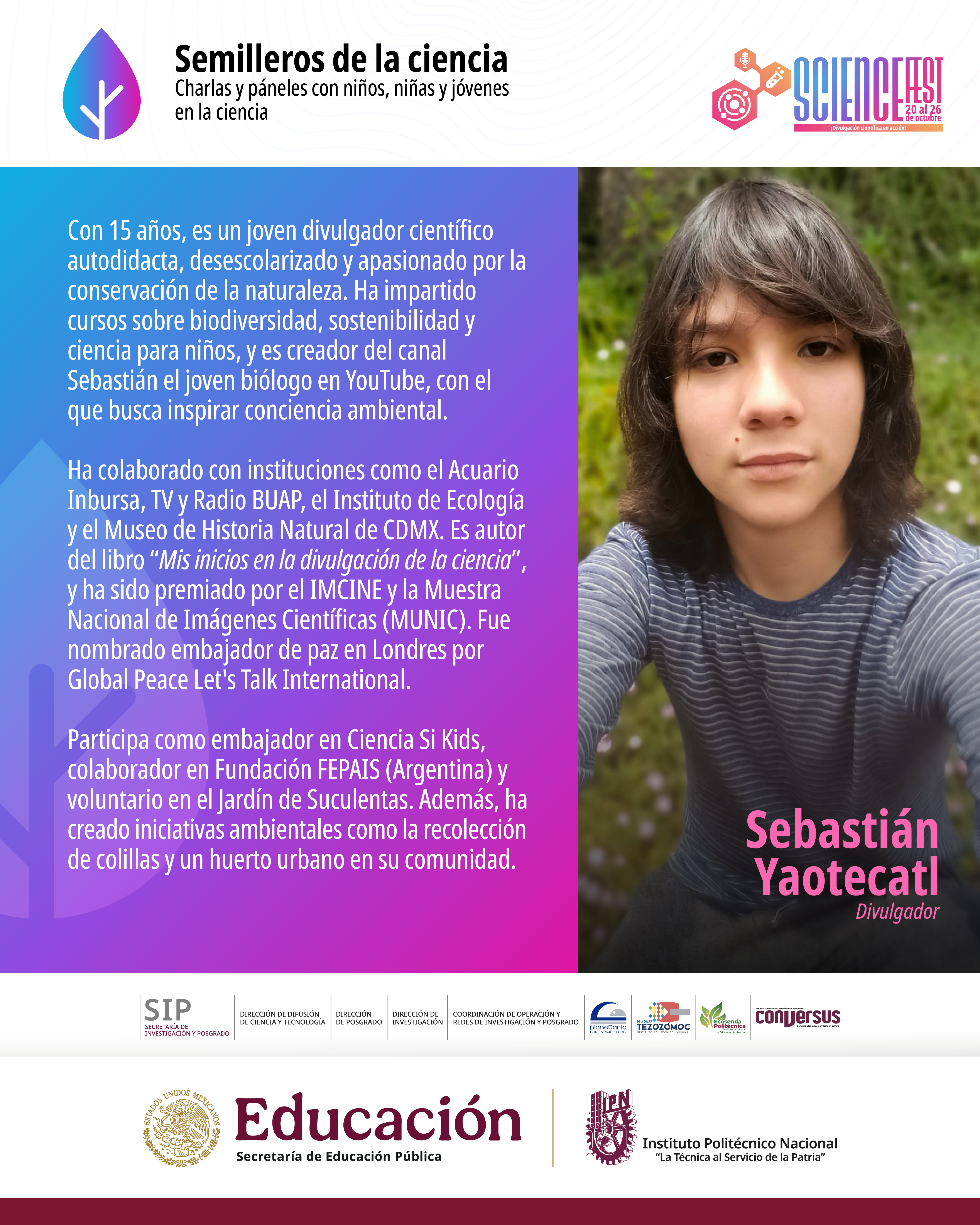 Paneles de divulgación protagonizados por niñas, niños y jóvenes que a su corta edad ya están realizando divulgación científica y son ya referentes nacionales e internacionales en diversos ámbitos de la ciencia y la tecnología.
