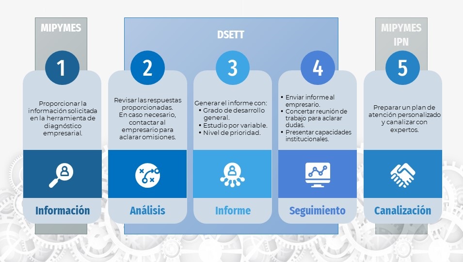 La Dirección de Servicios Empresariales y Transferencia Tecnológica (DSETT) pone a disposición de las Micro, Pequeñas y Medianas Empresas (MIPyMES) un proceso de evaluación empresarial completamente gratuito. Este servicio tiene como objetivo proporcionar un diagnóstico detallado para fortalecer la competitividad y el crecimiento de las organizaciones.