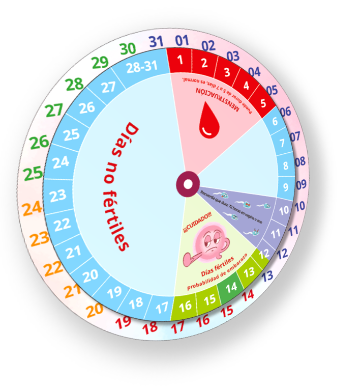 Este material te permitirá identificar los días fértiles en un ciclo menstrual, como un ejercicio de autocuidado y puesta en práctica de tus derechos sexuales reproductivos.