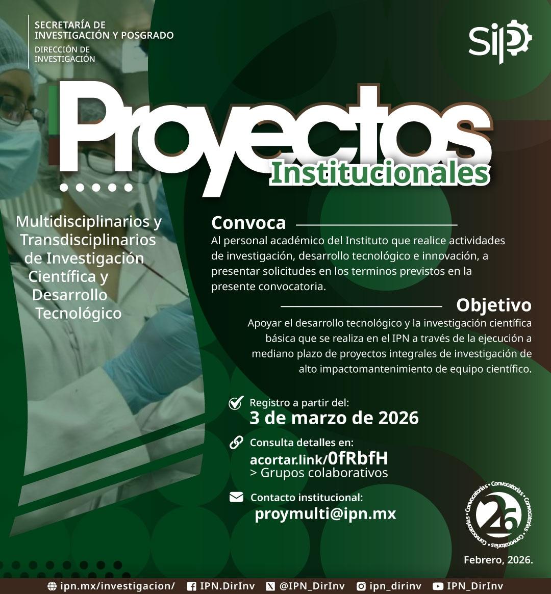 En la Dirección de Investigación del Instituto Politécnico Nacional impulsamos proyectos científicos, tecnológicos y de innovación que responden a las necesidades educativas, sociales y culturales de México. Con nuestro trabajo fortalecemos un ecosistema de investigación robusto y proyectamos el liderazgo de nuestras y nuestros investigadores.