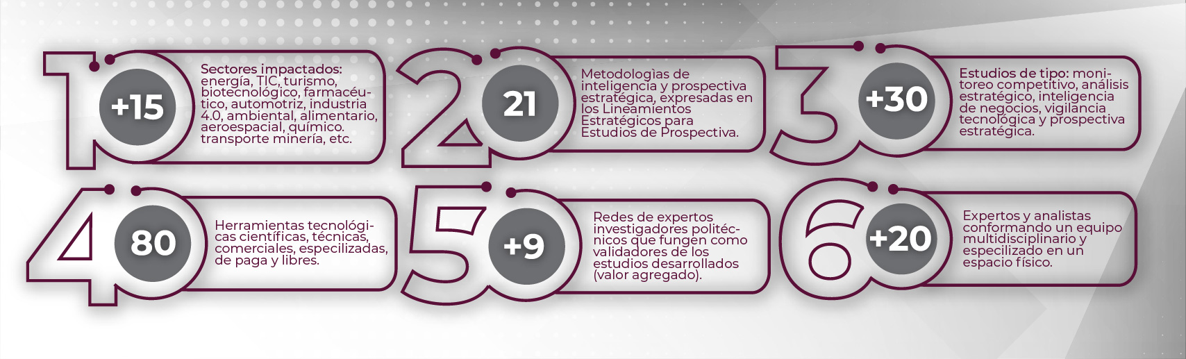 30 Estudios de tipo: monitoreo competitivo, análisis estratégico, inteligencia de negocios, vigilancia tecnológica y prospectiva estratégica.