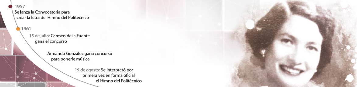 Para obtener el Himno se convocó a un concurso abierto para su creación, pero no hubo eco al llamado. Luego de dos nuevas convocatorias, la poetisa Carmen de la Fuente resultó triunfadora del certamen y la Dirección General del Instituto le premió, el 15 de julio de 1961. Posteriormente, como la música aún no estaba elegida, se convocó a un certamen para poner música a la letra del himno del IPN, y resultó triunfador Armando González Domínguez, pianista reconocido y director de varias orquestas.